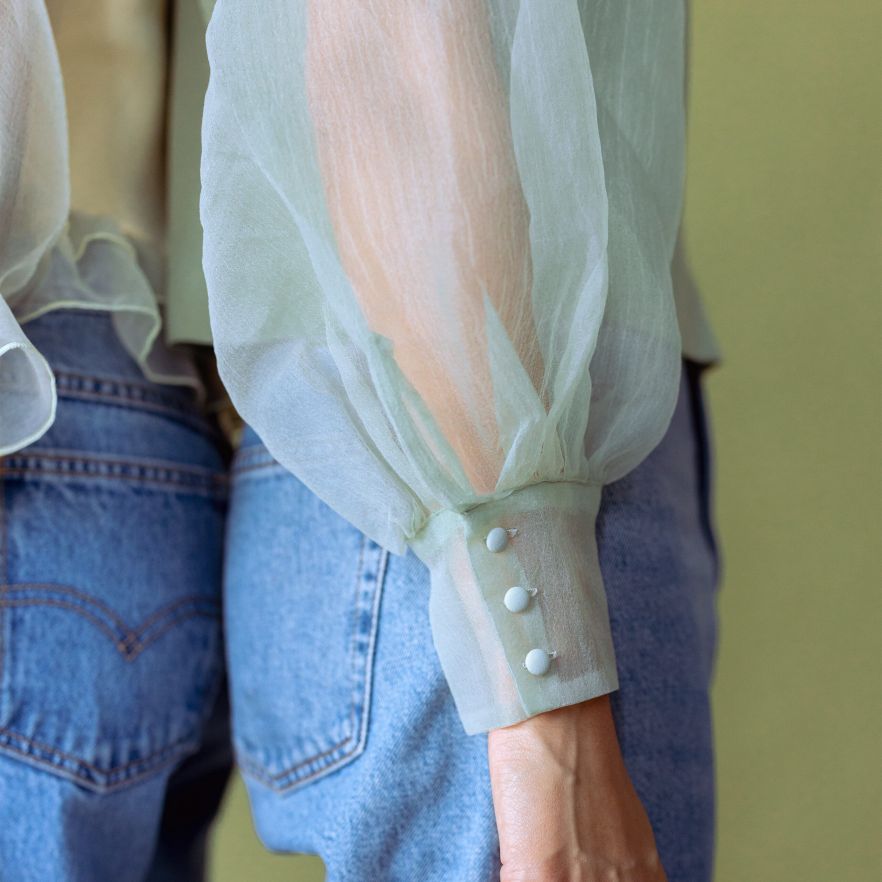 Ruffled Blouse With Sheer Puff Sleeves