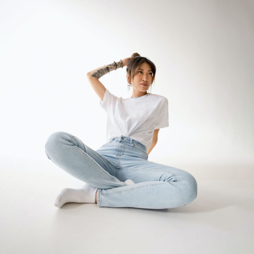 97% Cotton, 2% Spandex. Handle with love.